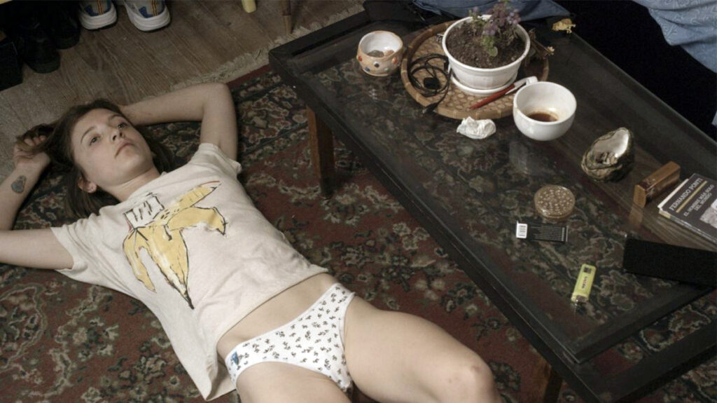 En su pareja, con un novio patético que la trata como quiere, las cosas tampoco andan bien y pronto se encuentra a la deriva ahí también, cayendo donde la reciban, sin un lugar fijo donde dormir.