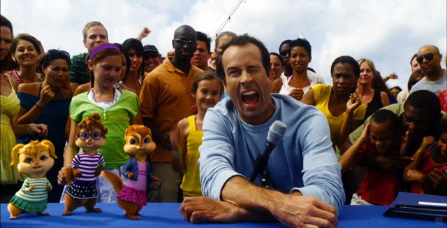 El hombre que comanda el grupo, Dave (Jason Lee, a quien le augurabamos un futuro mejor), decide irse de crucero. Y se lleva a la banda completa: chipmunks y chipettes, con los ya veteranos (en la versión con subtítulos) Alvin (Justin Long), Simon (Matthew Gray Gubler), Theodore (Jesse McCartney), Brittany (Christina Applegate), Jeanette (Anna Faris) y Eleanor (Amy Poehler). Nada fuera de lo común pero, un imprevisto sucede y la banda termina en una isla desierta. Bueno, no se si podemos decir solitaria…(cualquier comparación con «Lost», de JJ Abrams no es pura coincidencia), les diría que hay bastante más movimiento que cualquier noche de sábado en una ciudad populosa. Hay un villano clásico (por lo mediocre y desdibujado), Ian (David Cross) que hace muchas bromas sin gracia y alguna presencia misteriosa, pero no mucho más. Música y baile. Bromas hacia el mundo de la industria. Listo.